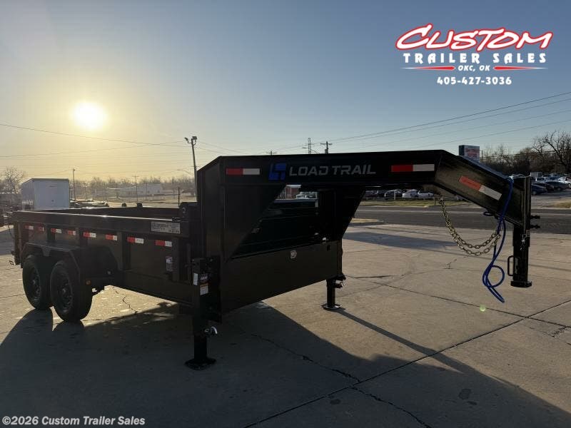 2025 LOAD TRAIL GD 14 X 83 TANDEM AXLE LOW PRO 14K GOOSENECK DUMP W/ 2' SIDES 2 - 7K DEXTER ELECTRIC BRAKE SPRING AXLES 2 5/16" ROUND ADJUSTABLE COUPLER DUAL 10K SPRING LOADED DROP LEG JACKS 8" I-BEAM FRAME 10" I-BEAM NECK 16" CROSS MEMBERS SCISSOR HOIST W/ STANDARD PUMP 24" DUMP SIDES 2 WAY SPREADER GATE 10 GAUGE FLOOR TARP KIT WELD ON DIAMOND PLATE FENDERS REAR SLIDE IN RAMPS - 80" X 16" REAR SUPPORT STANDS (2" X 2" TUBING) 4 - 3" WELD-ON D-RINGS FRONT TOOL BOX (FULL WIDTH BETWEEN RISERS) LED LIGHTS COLD WEATHER HARNESS STANDARD BATTERY WALL CHARGER (5 AMP) SPARE TIRE BLACK STEEL WHEELS 235/80R/16 10 PLY TIRES 4ZEGD1429S3351037 POWDER COATED BLACK WEIGHT - 4,980LBS GVWR - 14,000LBS WARRANTY INFO: 2 YEAR COMPREHENSIVE LIMITED WARRANTY 3 YEAR STRUCTURAL 2 YEAR ROAD SIDE ASSISTANCE - Road Service Program 903-783-3933 for Info. CUSTOM TRAILER SALES 8005 NE 23RD STREET OKLAHOMA CITY, OK 73141 CALL OR TEXT: 405-427-3036 CUSTOMTRAILERSALES.COM HOURS MONDAY-FRIDAY: 8AM-5PM CLOSED SATURDAY - Available by Appointment CLOSED SUNDAY CALL OR TEXT: 405-427-3036 CUSTOMTRAILERSALES.COM FINANCE OPTIONS AVAILABLE Rent-to-Own (ALL CREDIT APPROVED) Clicklease Sheffield Financial Synchrony Trailer Solutions Financial Apply for financing online at customtrailersales.com/financing WE STRIVE TO ENSURE ALL PRICING & INFORMATION CONTAINED IN THIS AD IS ACCURATE. DEALER RESERVES THE RIGHT TO REFUSE ANY SALE DUE TO PRICING ERRORS AND WILL NOT BE HELD RESPONSIBLE FOR ANY ERRORS RESULTING FROM TYPOS, INACCURATE DETAIL INFORMATION OR TECHNICAL MISTAKES. WE RESERVE THE RIGHT TO CORRECT ANY PRICING ERRORS AT ANY TIME. INVENTORY IS CONSTANTLY CHANGING - CALL BEFORE YOU COME TO GUARANTEE AVAILABILITY.