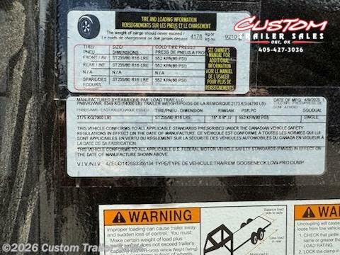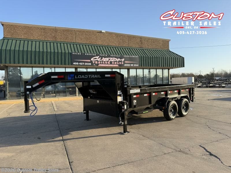 2025 LOAD TRAIL GD 14 X 83 TANDEM AXLE LOW PRO 14K GOOSENECK DUMP W/ 2' SIDES 2 - 7K DEXTER ELECTRIC BRAKE SPRING AXLES 2 5/16" ROUND ADJUSTABLE COUPLER DUAL 10K SPRING LOADED DROP LEG JACKS 8" I-BEAM FRAME 10" I-BEAM NECK 16" CROSS MEMBERS SCISSOR HOIST W/ STANDARD PUMP 24" DUMP SIDES 2 WAY SPREADER GATE 10 GAUGE FLOOR TARP KIT WELD ON DIAMOND PLATE FENDERS REAR SLIDE IN RAMPS - 80" X 16" REAR SUPPORT STANDS (2" X 2" TUBING) 4 - 3" WELD-ON D-RINGS FRONT TOOL BOX (FULL WIDTH BETWEEN RISERS) LED LIGHTS COLD WEATHER HARNESS STANDARD BATTERY WALL CHARGER (5 AMP) SPARE TIRE BLACK STEEL WHEELS 235/80R/16 10 PLY TIRES 4ZEGD1425S3355134 POWDER COATED BLACK WEIGHT - 4,980LBS GVWR - 14,000LBS WARRANTY INFO: 2 YEAR COMPREHENSIVE LIMITED WARRANTY 3 YEAR STRUCTURAL 2 YEAR ROAD SIDE ASSISTANCE - Road Service Program 903-783-3933 for Info. CUSTOM TRAILER SALES 8005 NE 23RD STREET OKLAHOMA CITY, OK 73141 CALL OR TEXT: 405-427-3036 CUSTOMTRAILERSALES.COM HOURS MONDAY-FRIDAY: 8AM-5PM CLOSED SATURDAY - Available by Appointment CLOSED SUNDAY CALL OR TEXT: 405-427-3036 CUSTOMTRAILERSALES.COM FINANCE OPTIONS AVAILABLE Rent-to-Own (ALL CREDIT APPROVED) Clicklease Sheffield Financial Synchrony Trailer Solutions Financial Apply for financing online at customtrailersales.com/financing WE STRIVE TO ENSURE ALL PRICING & INFORMATION CONTAINED IN THIS AD IS ACCURATE. DEALER RESERVES THE RIGHT TO REFUSE ANY SALE DUE TO PRICING ERRORS AND WILL NOT BE HELD RESPONSIBLE FOR ANY ERRORS RESULTING FROM TYPOS, INACCURATE DETAIL INFORMATION OR TECHNICAL MISTAKES. WE RESERVE THE RIGHT TO CORRECT ANY PRICING ERRORS AT ANY TIME. INVENTORY IS CONSTANTLY CHANGING - CALL BEFORE YOU COME TO GUARANTEE AVAILABILITY.